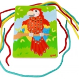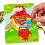 Uživajte v veselju in učenju z lesenimi veznimi igračami znamke Goki, ki so zasnovane za pomoč pri razvoju fine motorike in koncentracije otrok. Ta komplet vsebuje tri različno obarvane figure - papiga, lev in zebra.