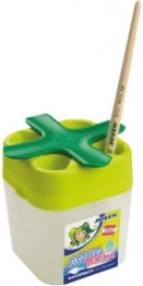 Praktična posoda za vodo za ustvarjalce in otroke z neprepustnim pokrovom in križno odprtino za čopiče. Zmanjšuje nered, je stabilna, enostavna za čiščenje in odlična za akvarel in šolsko likovno vzgojo. Izpolnjuje CE izjavo o skladnosti.
