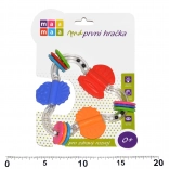 Vesela otroška ropotuljica v obliki trikotnika dolžine 14 cm pritegne dojenčka z barvitim videzom in nežnimi ropotajočimi zvoki, ki pomirjajo ter spodbujajo razvoj grobe motorike, lahek prijem in koordinacijo oko–roka. Varna izbira za otroke od rojstva dalje.