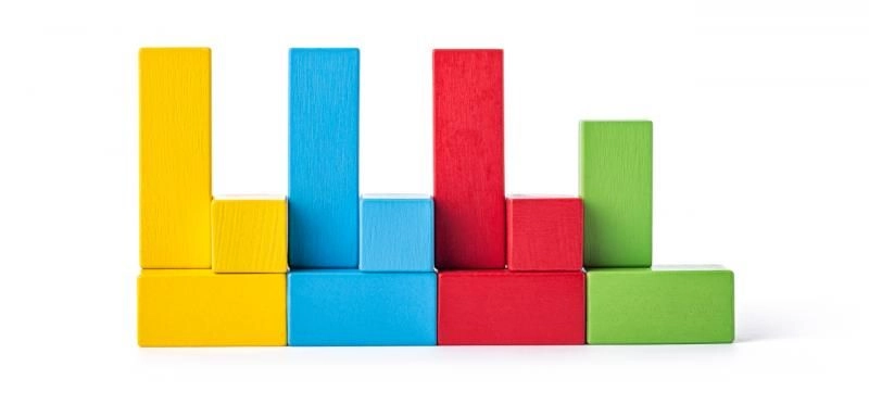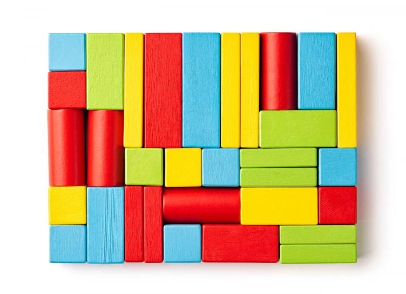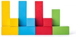 Komplet različnih oblik in barv spodbuja domišljijo, logiko in prepoznavanje oblik. Odlično za gradnjo stolpov, mostov in preprostih konstrukcij.