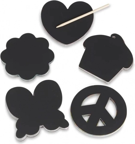 Odkrijte ustvarjalno zabavo za otroke s tem kompletom ScratchArt! Zahvaljujoč enostavnemu graviranju barvnih kartic si otroci razvijajo domišljijo in fino motoriko. Idealno kot darilo in aktivnost na poti. Preprosto okraševanje s praskanjem, barvni učinki pod črno folijo in varna izvedba s certifikatom CE bodo razveselili male ustvarjalce od 4. leta naprej.