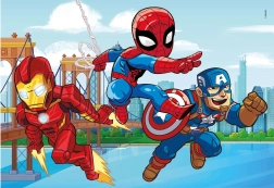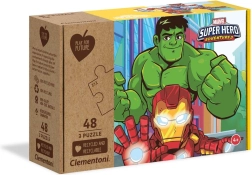 Otroški komplet treh sestavljank z motivi MARVEL Super Hero Adventures ponuja 3 slike po 48 koščkov v velikosti 32 × 22 cm. Izdelano iz 100 % recikliranih in reciklabilnih materialov, spodbuja opazovalne sposobnosti, logično razmišljanje in ročne spretnosti. Idealna zabava za otroke od 4 let naprej in za vso družino.