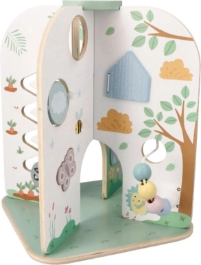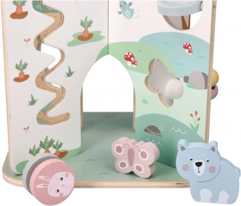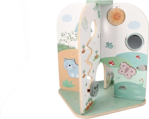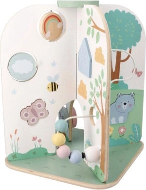 Uživajte v zabavi z lesenim središčem aktivnosti, ki je idealno darilo za otroke od 18 mesecev. Ta čudovita, velika in funkcionalna igrača podpira razvoj fine motorike in je primerna za domišljijsko igro.
