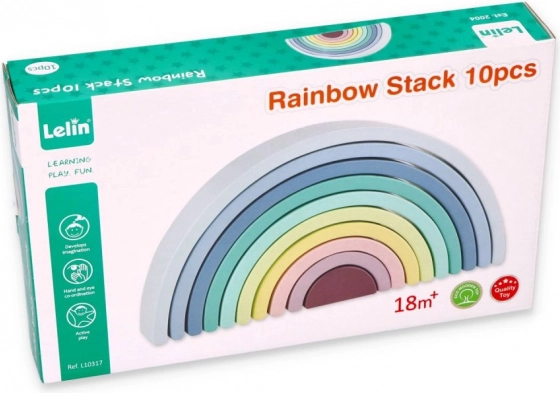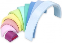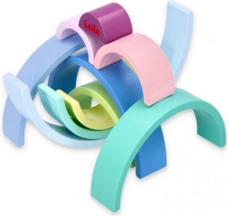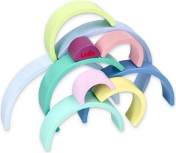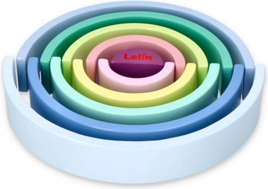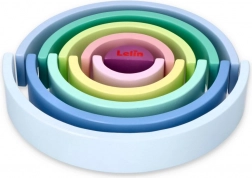 Leseni loki v pastelnih barvah, kot so modra, zelena in rožnata, podpirajo poznavanje barv in ustvarjalno igro.