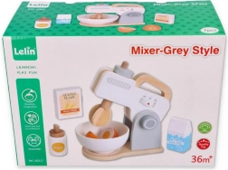Ta leseni mešalnik je odlična igrača za mlade kuharje, ki radi posnemajo dejanja odraslih. Zasnova v sivi in naravni barvi lesa se popolno prilega vsaki otroški kuhinji.