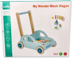 Lesen sprehajalnik s kockami LELIN združuje oporo pri hoji z ustvarjalnim sestavljanjem. Prijeten lakiran les je trpežen, topel na dotik in bistveno obstojnejši od plastike. Oblika avtomobilčka otroke pritegne na prvi pogled, med vožnjo pa vadijo ravnotežje, koordinacijo in samozavest v koraku.