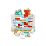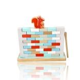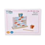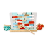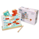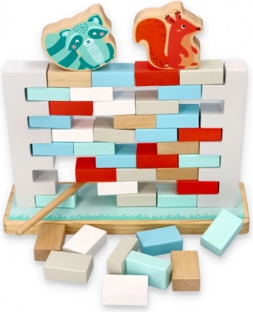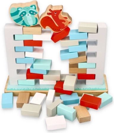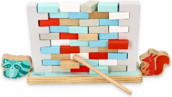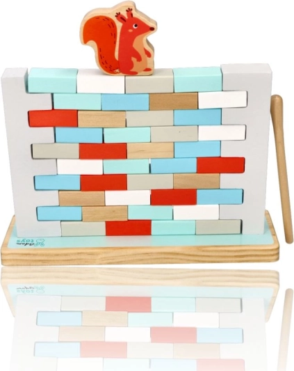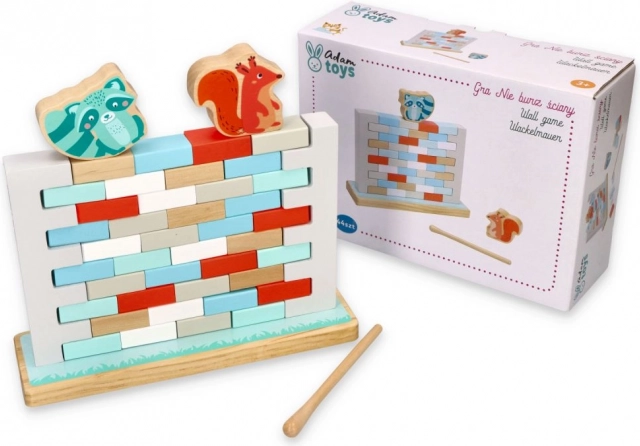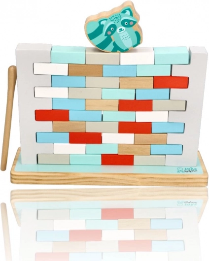 NE PODRI ZID je privlačna spretnostna igra, ki razvija potrpežljivost, natančnost in timsko sodelovanje. Cilj je postopoma izvleči opeke iz zidu z leseno palčko tako, da se konstrukcija ne sesuje in da živalice na vrhu ostanejo stati. Igra je idealna za predšolske otroke in skupne družinske trenutke.