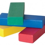 Vsak blok je drugačne barve - rdeč, moder, rumen in zelen, kar daje vizualno pestrost in otroke uči prepoznavati barve.