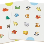 Leseno pexeso Živalice in simboli je igra, ki vaš spomin dvigne na novo raven. Igralci vstavljajo kartonske predloge s slikami v osnovno leseno ploščo in jih prekrivajo z modrimi kamni. Igra poteka enako kot klasično pexeso, a zmaga tisti, ki zbere največ modrih kamnov.