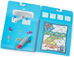 Polnilni vodni flomaster razkrije barve na straneh, po sušenju pa vse izgine. Brez barv, brez madežev – le čista zabava za otroke in starše.
