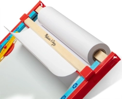 Vgrajen nosilec s papirno rolo podpira slikanje s čopiči in risanje s flomastri. Preprosto odtrgajte in razstavite končane risbice.