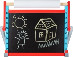 Eno stran uporabljate kot klasično kredo tablo, drugo kot belo magnetno površino za flomastre in magnetke. Otroci lahko zlahka menjajo tehnike in slog risanja.