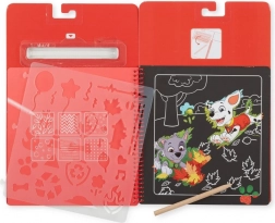 Pod črno plastjo se skrivajo pisane barve in prizori z Marshallom. Otroci uživajo v takojšnjem »vau« učinku pri vsakem praskanju.