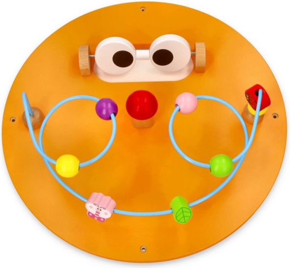 Glava gosenice je opremljena s kovinsko zanko z lesenimi biseri, ki jih otroci lahko premikajo po labirintu.
