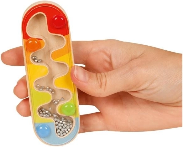 Drobne kroglice ustvarjajo prijetno šumenje, ki spominja na dež – idealno za zaznavanje ritma in mirno igro.