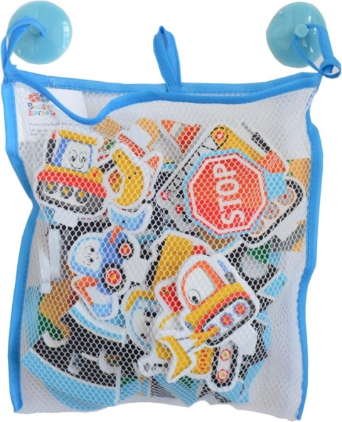 Ta barvit kopalni set spremeni vsako kopanje v pustolovščino. Zelo lahki peneasti koščki plavajo na vodi in se po navlaženju zlahka oprimejo gladkih površin, kot so ploščice ali rob kadi. Otroci lahko sestavljajo ceste, razporejajo prometne znake in se igrajo z gradbenimi vozili, medtem ko spoznavajo pravila prometa.