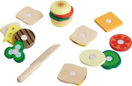 Ta kakovosten lesen set je zasnovan tako, da otroke zabava in hkrati podpira njihov razvoj. Zahvaljujoč realističnemu dizajnu lahko vaš otrok ustvari svoje najljubše sendviče iz različnih sestavin, kot so kruh, solata, paradižnik, sir in kumara.