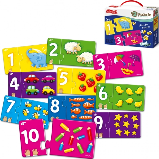 Puzzle Dežela Daleč Daleč za razvoj otrok, 10 parov za štetje in parčkanje. Učenje skozi zabavo.