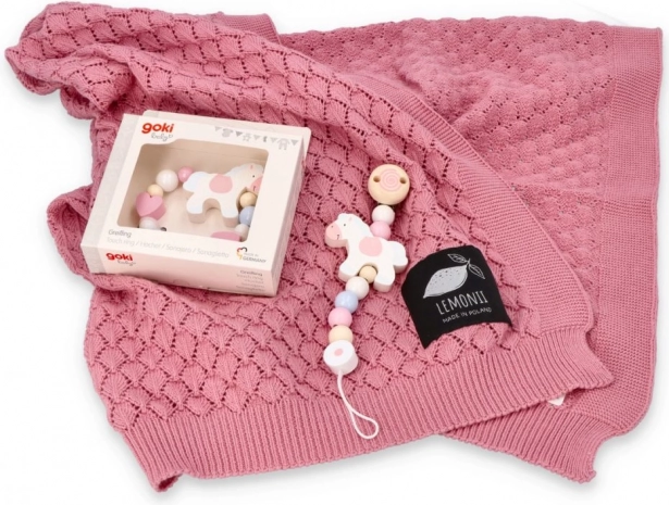 Obesek figurice ima kroglice v živahnih barvah, kot so bela, rožnata in kremna. Ena izmed kroglic je vesel konj. Obesek ima na eni strani sponko za pritrditev na voziček, na drugi strani pa vrvico za pritrditev figurice. Kakovost je zagotovljena z nemško blagovno znamko Goki. Izdelki so izdelani v Nemčiji iz visokokakovostnih in nestrupenih materialov. Vse kroglice in sestavni deli so skrbno izdelani iz visokokakovostnega lesa. Izdelek vzdržujte čist tako, da ga obrišete z vlažno krpo. Dolžina: 22 cm (v raztegnjenem stanju) × 7 cm Sklic: 65235Z Izjava o skladnosti CE