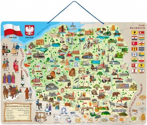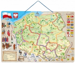 Zemljevid izpolnjuje zahteve varnosti igrač (CE). Zaradi kakovostne izdelave in privlačne zasnove je odličen pomočnik pri prvem spoznavanju geografije Poljske.