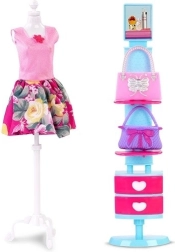 Ta elegantna lutka manekenka, visoka 29 cm, je pripravljena na vsak modni oder. Zahvaljujoč bogato opremljeni garderobi bodo otroci zlahka ustvarili izvirne stile za različne priložnosti ter razvijali domišljijo in fino motoriko.