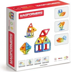 MAGFORMERS BASIC 14 so bloki z vgrajenimi močnimi neodimskimi magneti, ki se med seboj vedno privlačijo. Dovolj je približati stene dveh blokov in takoj se povežejo. Iz kock, oblikovanih po geometrijskih likih, lahko gradite čudovite tridimenzionalne zgradbe. Pri igri lahko uporabite priložena navodila ali druge primere na strani magformersworld.com oziroma svojo domišljijo. Set vsebuje: 8 trikotnikov; 6 kvadratov.