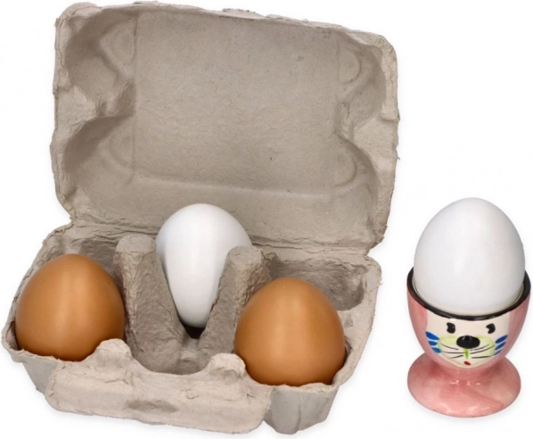 Karton, v katerem so jajca shranjena, spodbuja učenje o razporejanju in organizaciji, kar je za otroke zabaven in izobraževalen način učenja o vsakdanjih domačih opravilih. Z dimenzijami embalaže 15,5 x 11 x 7 cm se jajca enostavno shranijo in so idealna za otroško kuhinjo ali trgovino.