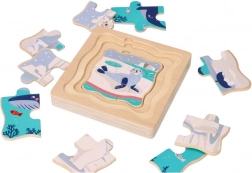 Odkrijte čarobnost Arktike z našo leseno sestavljanko, ki je idealna za otroke od 12 mesecev dalje. Sestavljanka vključuje naslednje lastnosti: