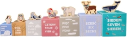 Vsaka kocka nosi številke 1–7 in ustrezno število prikupnih arktičnih živali. Otroci naravno vadijo štetje in prepoznavanje živali, vključno z imeni števil v treh jezikih.