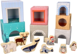 Tematske ilustracije in izrezi v kockah omogočajo gradnjo hišk, zooja ali celotnega polarnega mesteca. Igra brez meja razvija domišljijo in samostojnost.