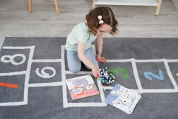 Otroci barvne kroglice pripisujejo ilustracijam živali in preprostim vzorcem. Učenje barv, štetja in razvrščanja poteka naravno skozi igro.