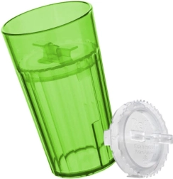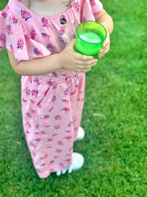 Poseben vložek v notranjosti lončka upočasni pretok tekočine, zato se otrok varno nauči piti iz odprtega lončka brez nastavkov in slamk.