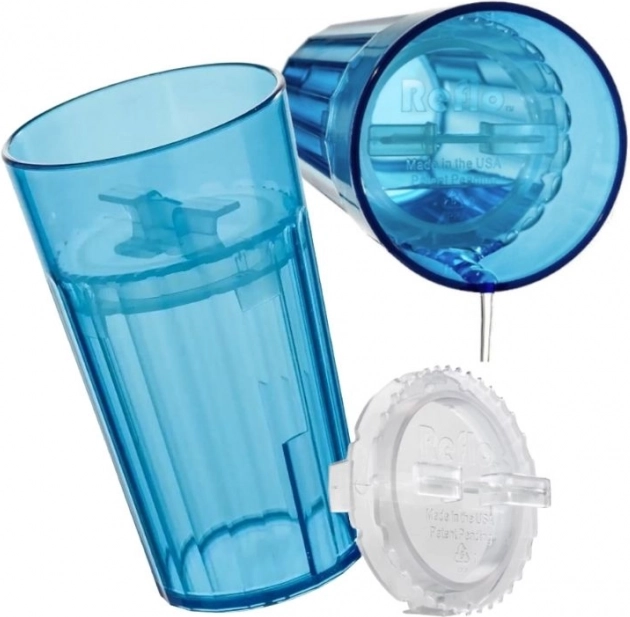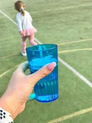 Lonček je visok 12 cm, ima praktičen volumen za pitje 170 ml (skupna kapaciteta 280 ml) in se udobno drži tudi z manjšimi rokami. Modra različica bo navdušila male in velike; na voljo so tudi druge barve (rožnata, prozorna, zelena). Izdelano v ZDA za kakovost, ki jo cenijo starši in otroci.