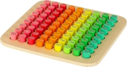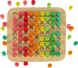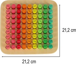 Ta velika lesena tabla poštevanke je idealen pripomoček za šolarje od 7 let naprej. Zahvaljujoč preglednim kockam s primeri in rezultati se otroci učijo množenje vizualno in na igriv način. Barvna zasnova povečuje preglednost in podpira lažje pomnjenje.