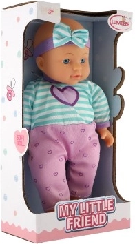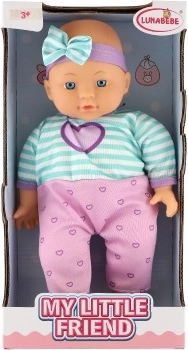 Punčka My Little Friend je idealna spremljevalka za vašo malčico ali malčka. Oblečena v pisano oblačilo s čudovito pentljo, ta punčka spodbuja domišljijo in poglablja veščine, kot sta odgovornost in empatija. Njena glavica je iz gume, telo pa mehko in tekstilno, kar ji daje realističen občutek. Z višino 30 cm je popolna za majhne otroške ročice.