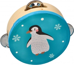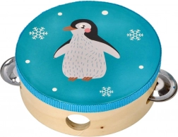 Ta barvit tamburin z ilustracijo pingvina je odlična izbira za prve glasbene korake. Zaradi kompaktnih mer dobro leži v otroški roki in podpira koordinacijo, ritem in slušno zaznavanje. Močan lesen okvir in kakovostne kovinske ploščice ustvarjajo jasen zvok, ki otroke navdušuje.