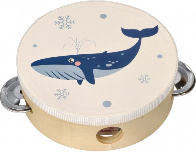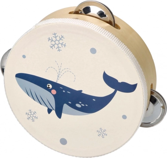 Ta otroški tamburin z veselým motivom kita je odličen glasbeni instrument za prve ritmične poskuse. Leseno ohišje, napeta opna in kovinski zvončki ustvarjajo prijeten zvok, ki otroke motivira k igri in odkrivanju glasbe.