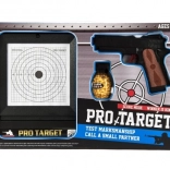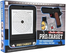 Privlačna embalaža PRO-TARGET na prvi pogled prikazuje vsebino – pištolo, tarčo in prostor za municijo, idealno kot darilo.