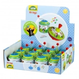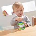 Z vrtenjem ročice zazveni prijetna ponavljajoča se melodija, ki spodbuja razvoj fine motorike, zbranosti in ritma. Odlično kot drobno darilo, spominek ali dodatek otroškemu kotičku.
