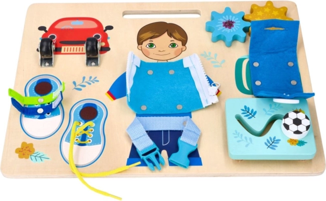 Plošča je v naravnih odtenkih lesa in je celovit izobraževalni pripomoček, ki razvija ključne spretnosti skozi privlačno igro.