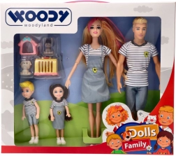 Predstavljamo igralni set Woodyland sodobna družina s hišnimi ljubljenčki. Ta ljubek komplet vsebuje figurice družine, vključno z mamo, očetom in dvema otrokoma, oblečene v usklajena črtasta oblačila. Vsaka figurica drži dodatke za hišne ljubljenčke, set pa dodatno razširjajo majhne živalske figurice. Namenjeno za otroke od 3 let, komplet prinaša ure zabave in podpira razvoj domišljije.