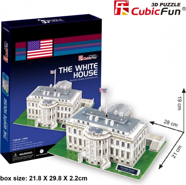 Sestavite ikonični Beli dom kot realistično 3D sestavljanko znamke CUBICFUN. 64 kosov iz trde pene z natisnjenim laminatom se enostavno sestavi brez lepila in škarij. Težavnost 4/7, čas gradnje 150–180 minut. Odlično darilo, izobraževalna igra in stilska dekoracija.