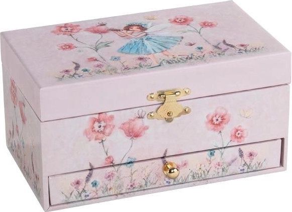 Elegantna glasbena škatlica za nakit z motivom makov bo razveselila male razvajenke in ljubitelje dekoracij. Ob odprtju zazveni melodija iz baleta Labodje jezero in balerina zapleše pred ogledalom. Praktični predalčki in predal olajšajo pregledno shranjevanje drobnih zakladov.