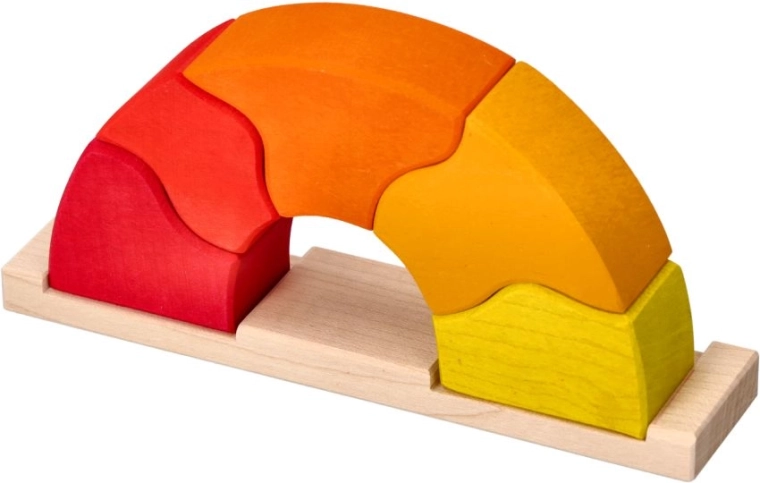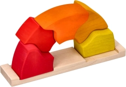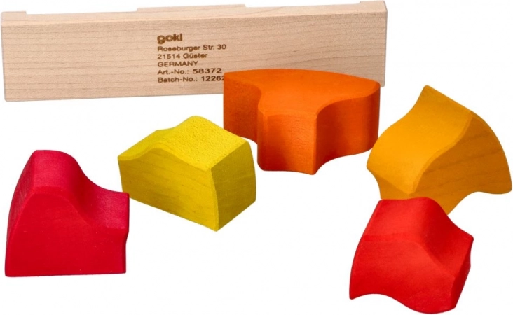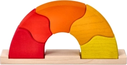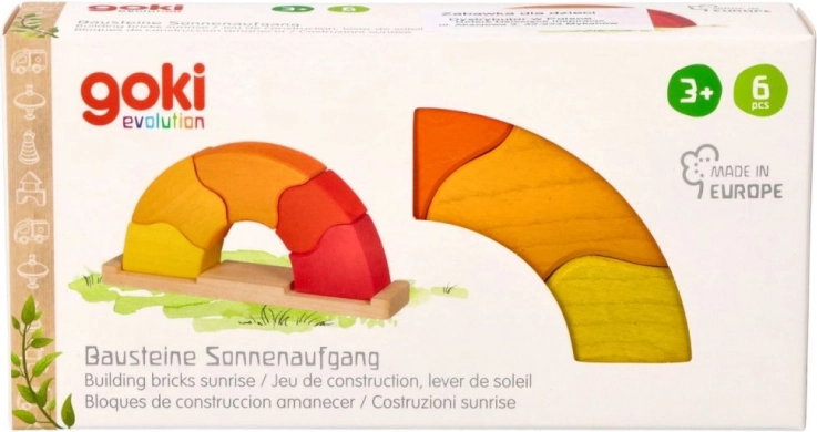 Lesena sestavljanka Sončni vzhod znamke GOKI prinaša veselje odkrivanja otrokom in staršem. Barvni loki v odtenkih rumene, oranžne in rdeče se zlagajo na leseno osnovo ter vabijo k eksperimentiranju, gradnji in svobodni ustvarjalni igri. Igrača naravno razvija koordinacijo oko–roka, potrpežljivost in osnovna načela ravnotežja.