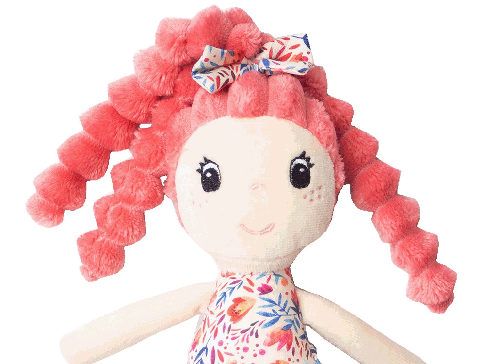 Zaradi lahke zasnove in približno 30 cm velikosti jo zlahka držijo tudi najmanjše rokice. Raznolike teksture in barvite oblekice spodbujajo domišljijo in ustvarjalno igro, medtem ko mehko telesce kar vabi k objemu.