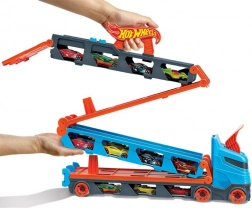 V nekaj trenutkih spremeni kamion v polnokrvno dirkalno stezo. Transporter skrije do 20 avtomobilčkov za prozornimi okenci, zato imaš zbirko vedno na očeh. Ko potegneš za ročaj, se prikolica razpre v dvopasovno stezo dolgo 1,8 m, medtem ko se kabina spremeni v dvojno izstrelitveno postajo za poštene štarte.
