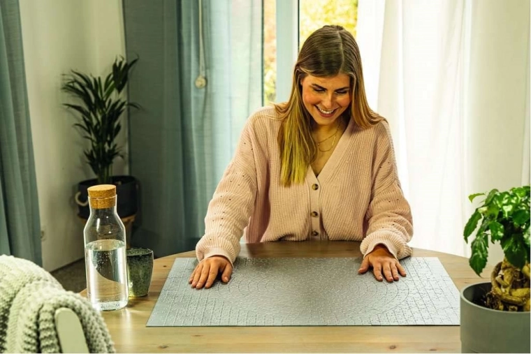 Sestavljanka RAVENSBURGER KRYPT srebrna je legendarni izziv za vse, ki imajo radi pravo osredotočenost. Monokromatska srebrna površina in okrogla oblika brez slikovne predloge dvigneta sestavljanje na novo raven – zanašate se na obliko koščkov, njihove medsebojne povezave in spiralni vzorec, ki vas postopoma pripelje do zaključka.