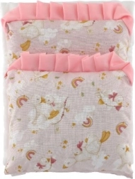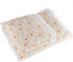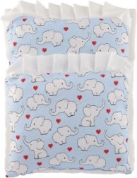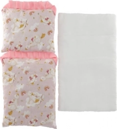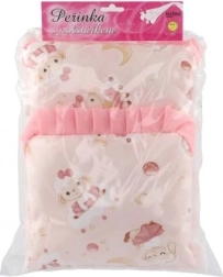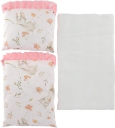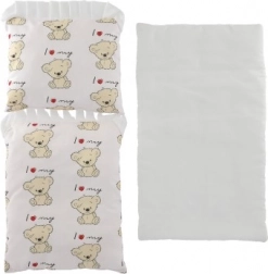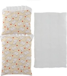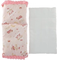 Praktičen komplet za punčke vsebuje vse, kar je potrebno za udoben spanec: mehko odejo, puhasto blazinico in podlogo. Zahvaljujoč nežnim materialom in igrivim motivom se poda v vsak otroški sobici ter spodbuja razvoj domišljije in igro vlog.