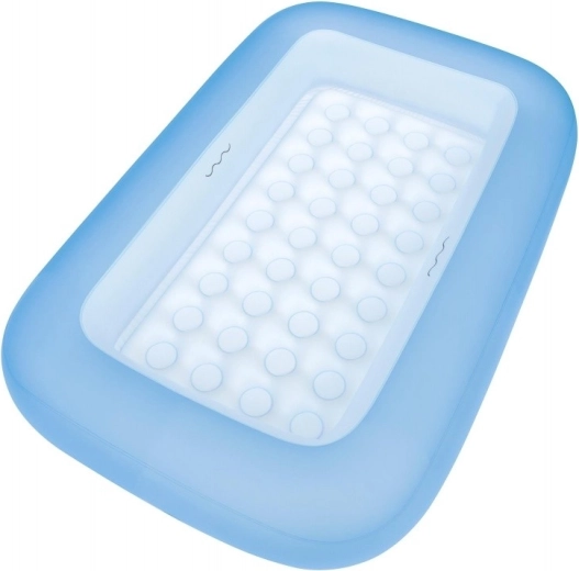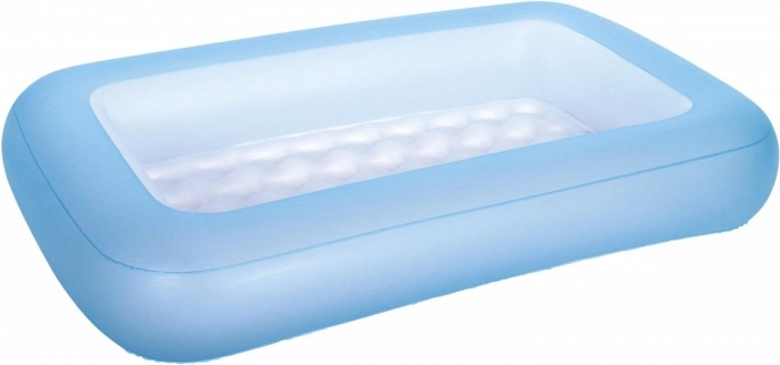 Napihljiv bazen Bestway z merami 165 x 104 x 25 cm je zasnovan za varno in udobno uporabo malih otrok. Narejen je iz trpežnega PVC materiala debeline 0,24 mm in ponuja udobne napihljive stene, ki služijo kot opora.