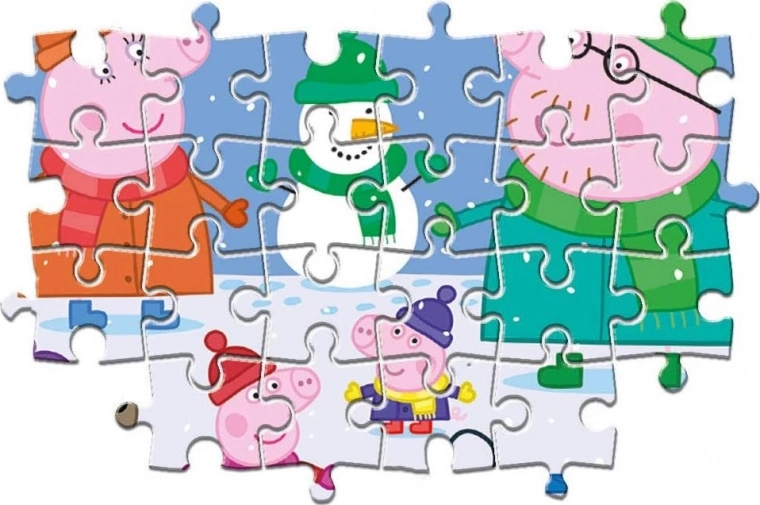 Motiv zimskih radosti z najljubšimi junaki iz PUJSA PEPA po sestavi ustvari sliko približno 62 × 42 cm, ki jo bodo otroci vzljubili. Sestavljanka je odlično darilo za predšolske otroke in šolarje ter prinaša zabavo za vso družino.